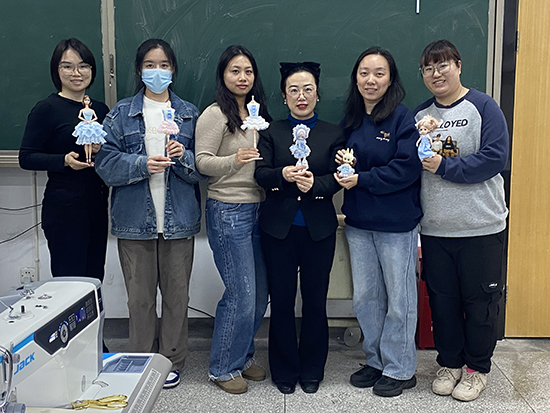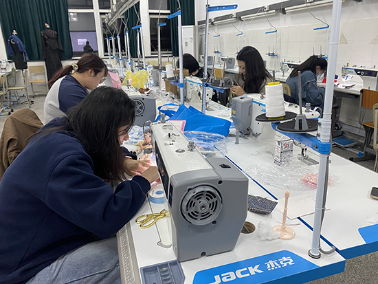 另一間實訓室里,聚集著一群充滿想象力與耐心的年輕人。球型關節人偶(BJD)的文化圈層雖不大,但愛好者們的熱情卻異常高漲。從打版、裁剪到縫制,學員們在專業的縫紉設備上一步步完成精致的娃衣作品。一位學員興奮地展示自己剛做好的娃娃連衣裙,針腳細密,褶皺精致:“我在網上看到這門課就立刻報名了。以前自己摸索總是不得要領,現在能在專業設備上學習,還有老師現場指導,進步特別快!”成就感溢于言表。