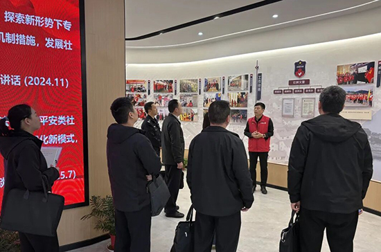 考察期間,李金明大隊長一行實地察看了工作站辦公環境、工作臺賬及裝備配備情況,詳細了解紅楓義警組織架構、日常巡邏防控、矛盾糾紛調解、反詐宣傳普及等工作開展詳情。紅楓義警負責人陳榮周陪同考察,通過現場展板介紹隊伍從無到有、從小到大的發展歷程,以及在楓橋派出所指導下,踐行“矛盾不上交、平安不出事、服務不缺位”治理理念的具體舉措。考察組對紅楓義警成立以來累計開展各類社會志愿活動3100余次、扎實推進轄區群防群治工作的務實作風與顯著成效給予高度贊賞。