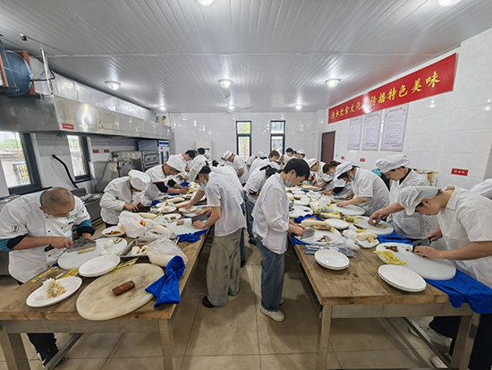 勞建洪在講話中指出,學(xué)校食堂從業(yè)人員的技術(shù)水平和職業(yè)素養(yǎng),直接關(guān)系到廣大師生的飲食安全與營(yíng)養(yǎng)保障,是教體系統(tǒng)建設(shè)“平安校園”“健康校園”的重要基石。他強(qiáng)調(diào),全體學(xué)員要珍惜機(jī)會(huì)、端正態(tài)度、靜下心來(lái),真正把食品安全法規(guī)、營(yíng)養(yǎng)配餐、成本控制等知識(shí)學(xué)懂弄通,把刀工、火候、調(diào)味等技能練扎實(shí);要嚴(yán)守紀(jì)律、確保實(shí)效,服從學(xué)院統(tǒng)一指揮,力爭(zhēng)以?xún)?yōu)異的成績(jī)?nèi)〉米C書(shū);要學(xué)以致用、服務(wù)師生,把學(xué)到的知識(shí)和技能帶回各自的工作崗位,用心烹制每一道菜肴,讓師生吃得安全、吃得營(yíng)養(yǎng)、吃得滿(mǎn)意。