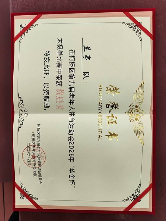 近日,柯橋區(qū)第九屆老年人體育運(yùn)動(dòng)會(huì)2026年“華舍杯”太極拳比賽圓滿落幕。經(jīng)過激烈角逐,蘭亭街道老年學(xué)校太極拳隊(duì)?wèi){借行云流水的動(dòng)作、整齊劃一的配合和昂揚(yáng)向上的精神風(fēng)貌,從眾多參賽隊(duì)伍中脫穎而出,榮獲本次大賽優(yōu)勝獎(jiǎng),為蘭亭街道贏得了榮譽(yù)。
