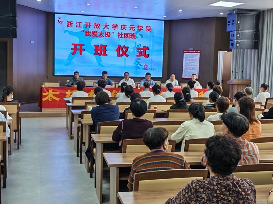 儀式上,浙江開放大學慶元學院領導發表致辭。他指出,太極作為中華優秀傳統文化的瑰寶,具有良好的社會價值。此次太極班的開設,是學院拓展社區教育服務功能、回應居民學習需求的重要舉措,也是推動全民終身學習、建設學習型社會的生動實踐。他希望全體學員珍惜學習機會,在強身健體的同時,弘揚太極文化,增進鄰里交流,共同營造積極健康的社區氛圍。