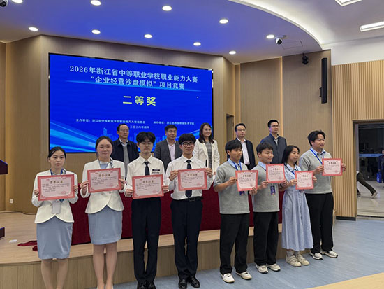4月14日,由浙江省職業(yè)院校技能大賽執(zhí)委會主辦的2026年浙江省中等職業(yè)能力大賽(學生技術(shù)技能類)“企業(yè)經(jīng)營沙盤模擬”項目圓滿落幕。嘉興市秀水中等專業(yè)學校財經(jīng)商貿(mào)系團隊憑借扎實的專業(yè)素養(yǎng)和默契的團隊配合,從全省眾多強隊中脫穎而出,斬獲二等獎!