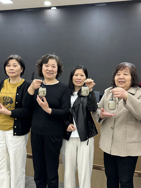 接著,工作人員為大家分發手工材料包,進入手工制作環節。工作人員現場示范配比方法,按照胎菊20克、枸杞8克、搭配花茶18克的標準,在工作人員的指導下,大家動手稱量、裝罐,在輕松氛圍中完成專屬養生花茶制作。現場氣氛溫馨而熱烈,大家專注而認真:認真學習封裝技巧,力求茶包整齊美觀。不一會兒,一個個香氣撲鼻、精致可愛的花茶罐便新鮮出爐,滿室芬芳。看著一罐罐裝滿芬芳花茶的茶罐,老人們的臉上洋溢著滿足與幸福的笑容。他們紛紛表示,這次活動不僅讓他們學到了花茶知識,享受到了親手制作的樂趣,更感受到了社區的關懷與溫暖。