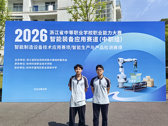 近日,2026年浙江省中等職業學校職業能力大賽(學生技術技能類)“智能制造設備技術應用”項目比賽在杭州市富陽區職業高級中學圓滿落幕。經過激烈角逐,海鹽職業教育中心23機電班羅景友、湯閩豪兩位同學憑借扎實的專業技能、規范的操作流程與默契的團隊協作,在全省30支參賽隊伍中脫穎而出,榮獲團體二等獎,指導教師張忠杰、張玉麗。