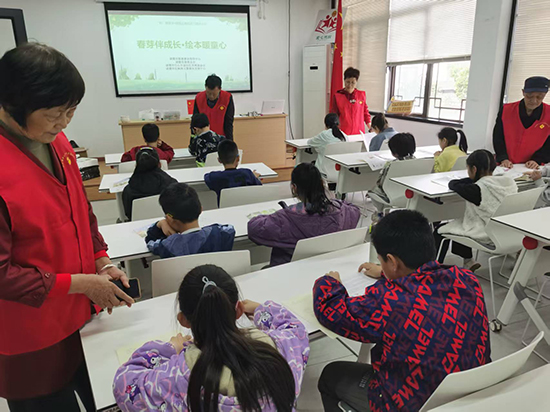 活動現(xiàn)場,明亮整潔的教室內坐滿了求知若渴的孩子們。在楓橋鎮(zhèn)關工委業(yè)務副主任胡國生的帶領下,身著紅馬甲的“五老”志愿者化身暖心陪伴者,穿梭于課桌之間,細心輔導孩子們閱讀繪本,耐心引導大家交流閱讀心得。孩子們從生動有趣的繪本故事中汲取知識養(yǎng)分,在志愿者細致講解中感受文字魅力,專注閱讀、踴躍互動,課堂氛圍溫馨而熱烈。