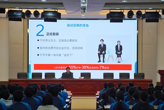 張靖晨老師圍繞面試禮儀,從面試前的資料準(zhǔn)備、形象管理,到面試中的談吐舉止、行為規(guī)范,再到面試后的致謝跟進(jìn)、結(jié)果溝通,逐一拆解關(guān)鍵細(xì)節(jié)。她以生動(dòng)的示范和實(shí)用的建議,幫助學(xué)生掌握全流程禮儀技巧,以得體素養(yǎng)為求職加分。