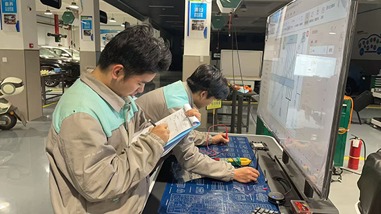 指導老師劉金隆、高峰主動扛起責任,全程深耕備賽一線。他們結合大賽評分標準,逐一對接考核要點,精準梳理考點難點,為兩名選手量身定制個性化訓練方案。從新能源汽車高低壓系統原理的深度解讀、故障診斷思路的邏輯梳理,到電驅動總成拆裝調試的每一個細節規范,兩位老師都耐心指導、反復打磨,手把手糾正操作偏差,點對點破解技術瓶頸。