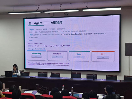 溫州市職業(yè)中等專業(yè)學(xué)校的張穗平老師作了題為《AI遇見中職語文——從工具選擇到課堂實踐》的專題講座。張老師從通用AI大模型、教育類小程序、Agent智能體三類工具入手,介紹了不同工具在中職語文教學(xué)中的適用場景。隨后,她以《燭之武退秦師》為例,具體演示了AI在字詞解析表生成、聽寫小程序制作、分層翻譯設(shè)計、課堂提問優(yōu)化、當堂檢測命題等環(huán)節(jié)中的操作方法。講座內(nèi)容貼近一線教學(xué)實際,案例具體、操作性強,不少教師表示可以直接參考使用。