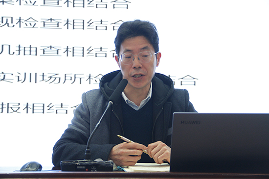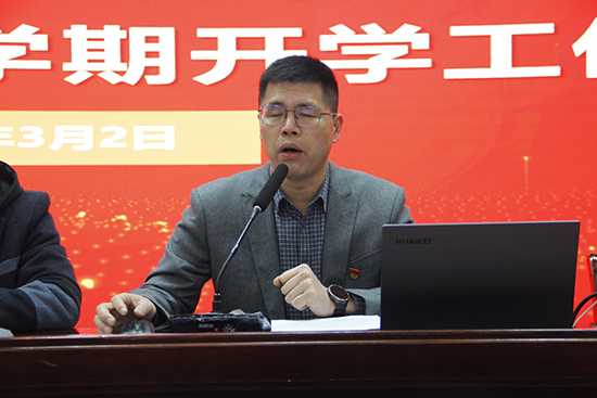 校黨委副書記陳建榮作關于教學線工作專題講話。首先陳建榮副書記對上學期教學工作進行分析總結,他提出新學期要以“教學常規落實、專業調整優化、實干創新提質”為目標,通過“六個結合”強化教學巡查(課堂檢查與教案檢查結合、組團檢查與常規檢查結合等),推行教考分離嚴肅考紀,并加強對3+2班級的質量監控。他還就新增專業(休閑體育、人工智能)、優質專業群建設及開學返校安排作了細致說明。學校副校長劉著程作關于新學期德育線工作專題講話。