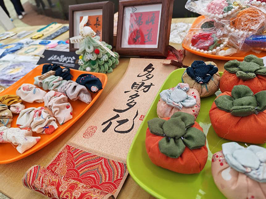 集市上,所有展陳作品均由學前教育、服裝專業學生親手創作,件件飽含巧思。學前教育專業帶來書簽、書法掛件、手工鑰匙扣、鉤織杯墊、自制手機鏈等文創與手作,童趣與匠心兼具;服裝專業帶來手工布藝、時尚配飾、精致毛線鉤織品等作品,設計感與實用性兼備,充分展現了兩大專業的扎實技能與創意活力。
