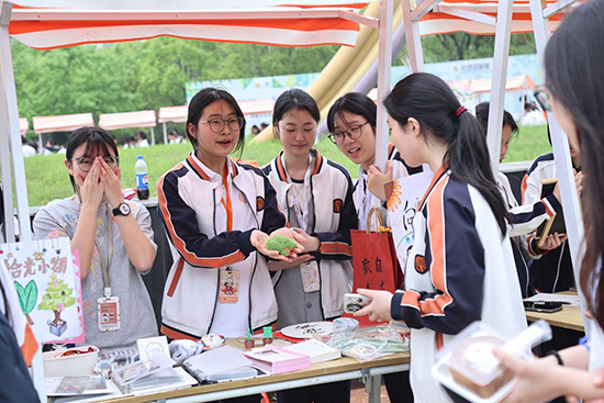 活動現場,同學們既是“創作者”又是“銷售員”,他們熱情地向師生介紹作品的設計理念和制作過程,在勞動中體驗創造價值、服務他人的快樂。