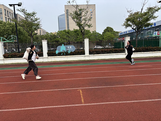 “負(fù)重前行”運(yùn)糧食接力賽,6人依次扛沙袋規(guī)范交接,嚴(yán)格遵循比賽規(guī)則,傳承了墾荒先輩腳踏實(shí)地、艱苦奮斗的初心。