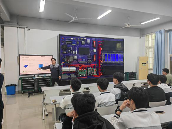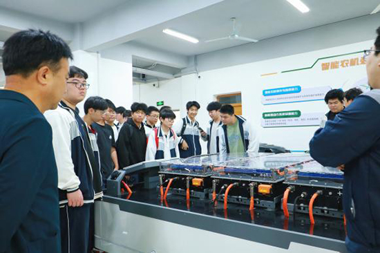 隨后,師生一行先后走進實訓室與圖書館。在實訓場地,專任教師為學校學生開展了一堂生動的新能源農機專題教學。教師結合行業發展實際,深入淺出地講解新能源農機的發展趨勢、核心技術及其在現代農業中的應用場景,同學們認真聆聽、積極互動,課堂氛圍濃厚。圖書館雅致的閱覽環境與豐富的館藏資源,也給同學們留下了深刻印象。